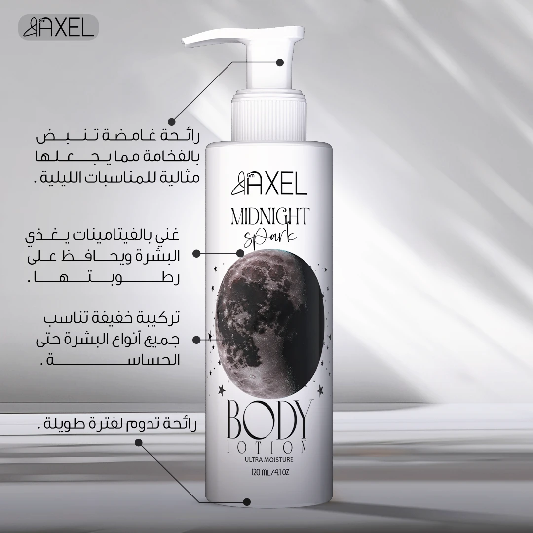 لوشن الجسم ميدنايت سبارك من جي إم أكسل - ترطيب عميق برائحة فريدة تأسر الحواس
